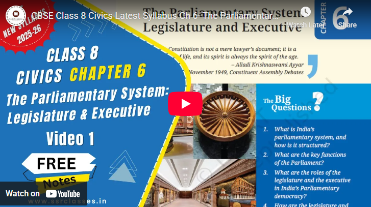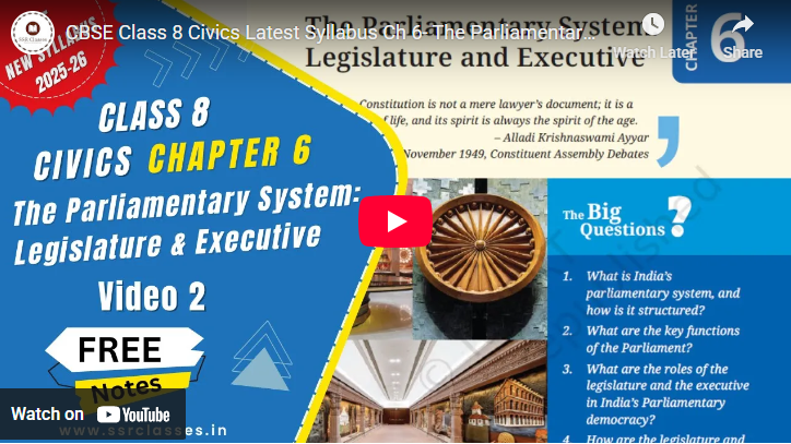 Class 8 CBSE Class 8 New Syllabus 2025-26, Civics Chapter – 6 Notes Byssr 5 January 202611 January 2026Write a Comment on CBSE Class 8 New Syllabus 2025-26, Civics Chapter – 6 Notes 1. CBSE Class 8 New Syllabus 2025-26, Civics Chapter – 6, YouTube Video – 1 Free notes: CBSE Class 8 New Syllabus 2025-26, Civics Chapter – 6 Notes, part – 1 download here 2. CBSE Class 8 New Syllabus 2025-26, Civics Chapter – 6, YouTube Video – 2 Free notes: CBSE Class 8 New Syllabus 2025-26, Civics Chapter – 6 Notes, part – 2 download here 3. CBSE Class 8 New Syllabus 2025-26, Civics Chapter – 6, YouTube Video – 3 Free notes download here